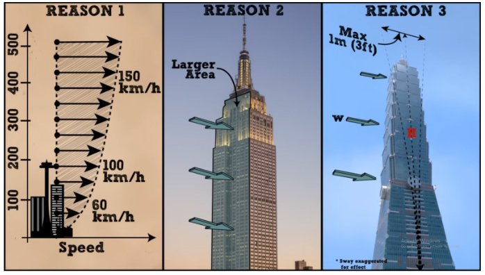 A 730 ton tune damper is placed in the top of the building that moves just the opposite direction of the building movement. But why does the building move? And why does the damper move just the opposite direction? Do all the buildings move?
