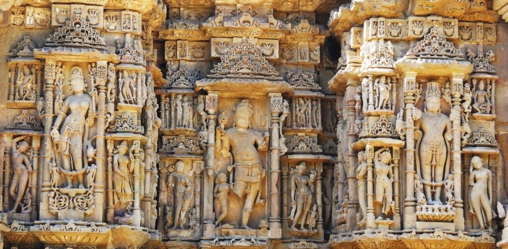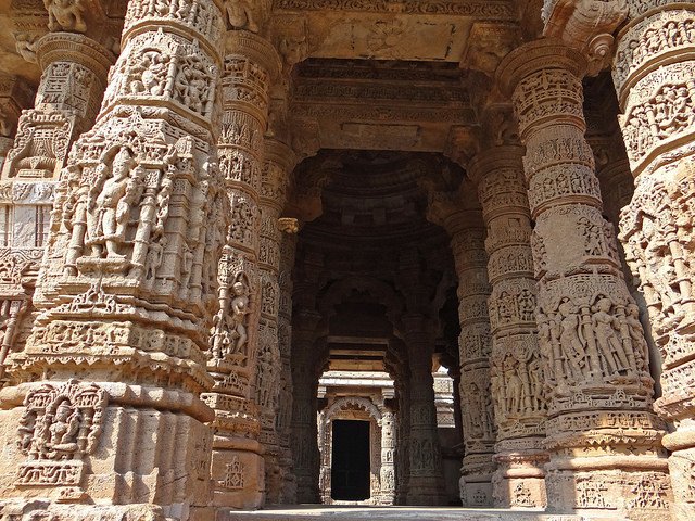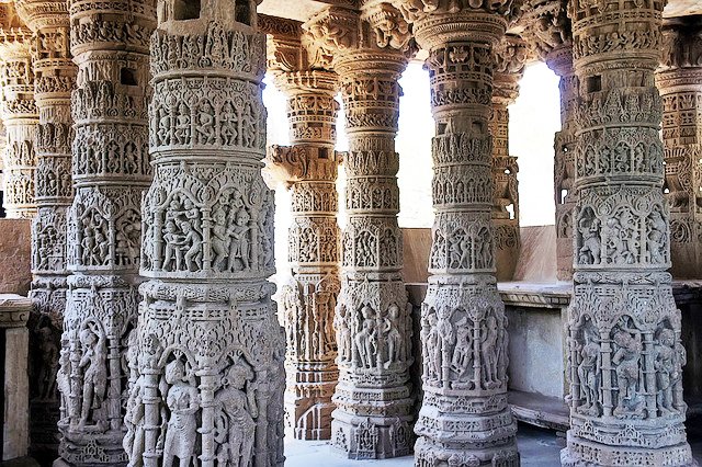 This hall functioned as a space for ritual performances and gatherings. Its pillars contain intricate shrinkara (miniature temple) forms, and its layout symbolizes the solar calendar.